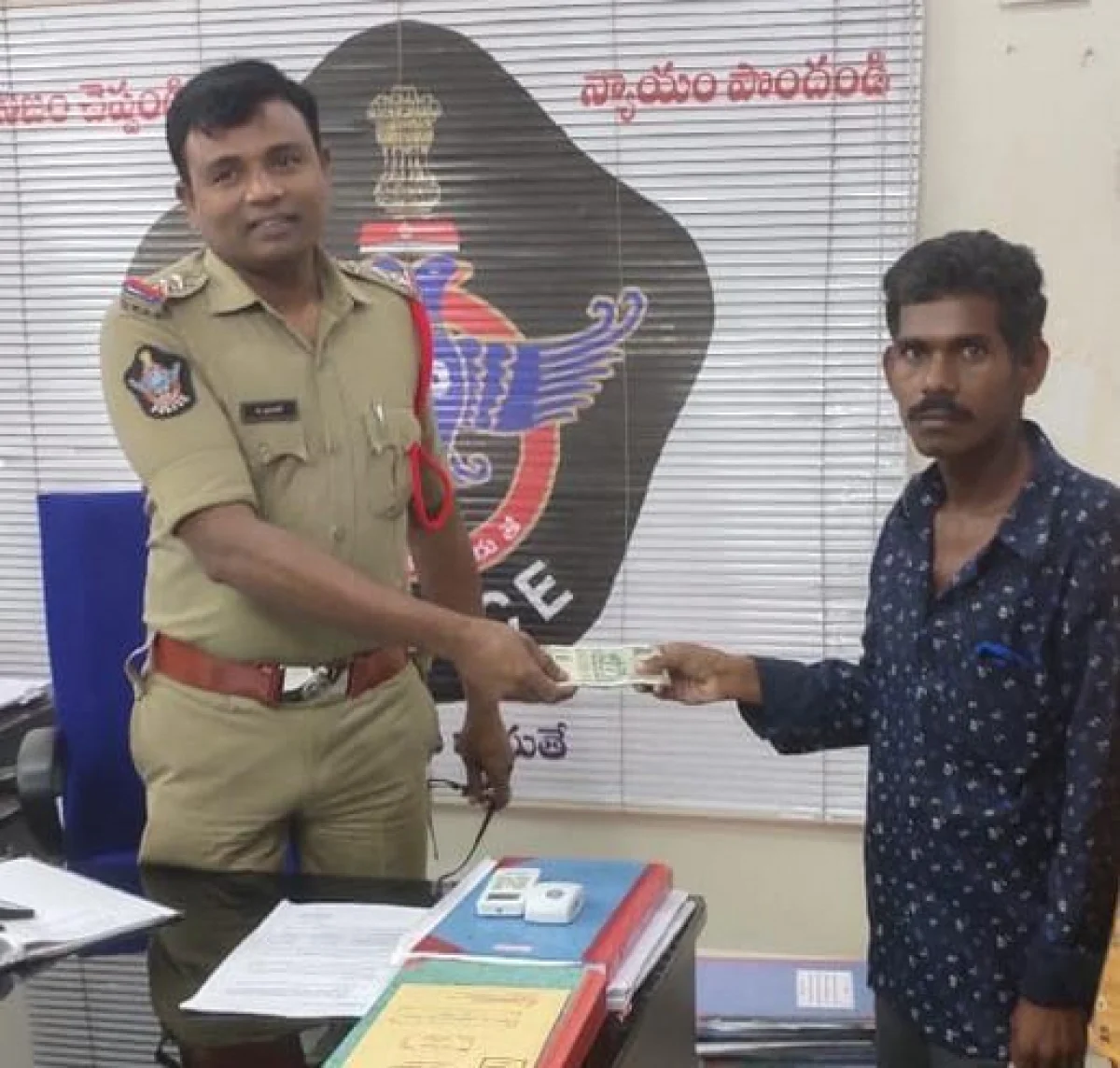 తనకు దొరికిన 9వేల రూపాయల నగదును పోలీసులకు అప్పగించాడు. దీనితో పోలీసులు డ్రైవర్ వీరాంజనేయులును అభినందించారు. తరువాత పోలీసుశాఖ వారు ఎటియంలో డబ్బులు పోగొట్టుకున్నవారు పోలీస్ స్టేషన్ కు వచ్చి సంప్రదించవలసిందిగా తెలియచేసారు.