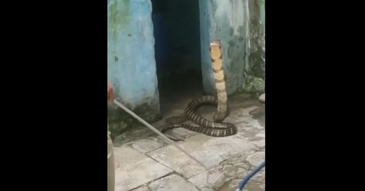 ప్రజలు నివాసం వుండే ప్రాంతానికి కోబ్రా రావడంతో జనం జడుసుకున్నారు. దీంతో అటవీ శాఖకు సమాచారం అందిచారు. వెంటనే స్నేక్ క్యాచర్ ఆ ప్రాంతానికి చేరుకుని.. ఆ పామును పట్టుకునేందుకు తోకను పట్టుకున్నాడు.
