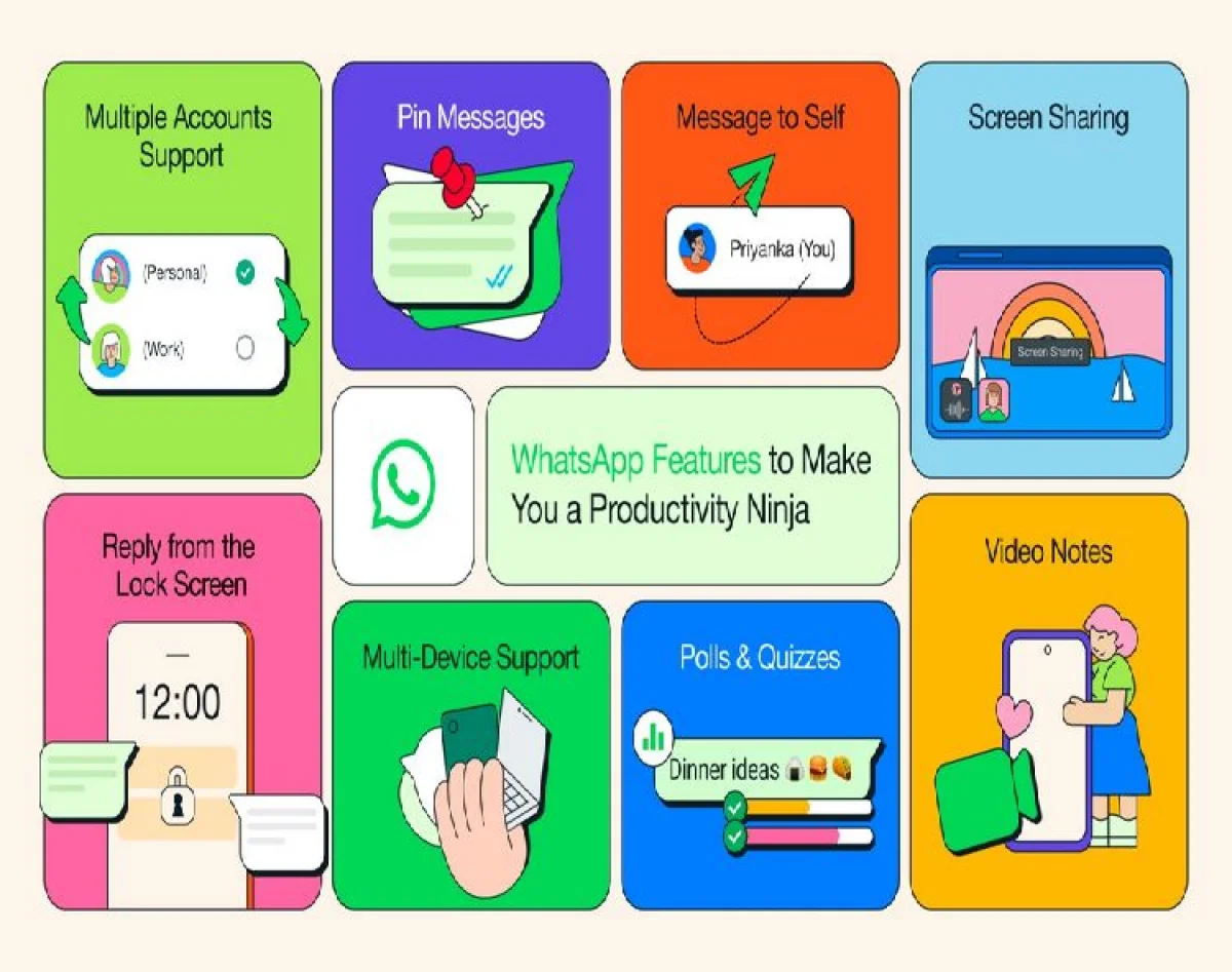 మీరు వాట్సప్ ద్వారా మీ సహోద్యోగితో కూడా కనెక్ట్ అయి ఉంటే, స్క్రీన్ షేరింగ్ ఫీచర్ మీ స్క్రీన్ని నేరుగా మీ కాంటాక్ట్లతో రియల్ టైమ్ షేర్ చేసేందుకు మిమ్మల్ని అనుమతిస్తుంది. ఆలోచనలను సమర్పించేందుకు, డిజైన్లను ప్రదర్శించడానికి లేదా సమస్యను పరిష్కరించడంలో ఎవరికైనా సహాయం చేయడానికి ఇది సరైనది. మెసేజ్ టు సెల్ఫ్ ఫీచర్ ఉపయోగించినందుకు మీ భవిష్యత్తు మీకు కృతజ్ఞతలు తెలుపుతుంది. ఈ ఫీచర్ నోట్స్, మెసేజ్లను ట్రాక్ చేయడానికి మీకు మీరే సందేశాలను పంపుకోవడానికి మిమ్మల్ని అనుమతిస్తుంది. మీకే సందేశాలు పని చేస్తాయి, సాధారణ చాట్ల తరహాలో, కానీ మీరు ఆడియో, వీడియో కాల్స్ చేయలేరు లేదా నోటిఫికేషన్లను మ్యూట్ చేయలేరు, మిమ్మల్ని మీరు నిరోధించలేరు లేదా నివేదించలేరు లేదా ఆన్లైన్లో మీరు చివరిగా చూసిన వాటిని చూడలేరు. మీరు ఇప్పటికీ ఈ టాప్ వాట్సప్ ఫీచర్లను ఉపయోగించకపోతే, రాబోయే ఏడాదిలో వాట్సప్ని ఎక్కువగా ఉపయోగించుకోవాలని గుర్తుంచుకోండి.