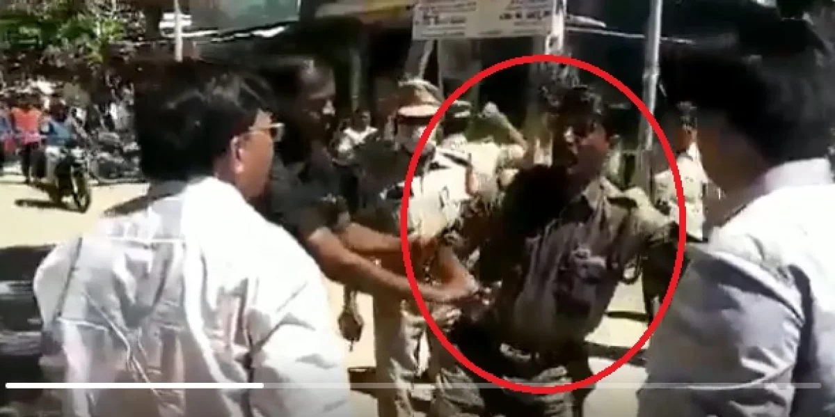 డీఎస్పీ వేధిస్తున్నాడని పెట్రోల్ పోసుకుని పోలీసు ఆత్మహత్యా యత్నం(Video)