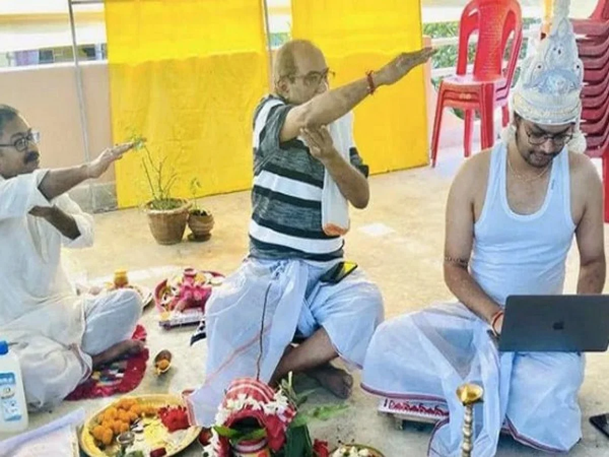 పై ఫోటోలో కనిపిస్తున్న కోల్కతాకు చెందిన ఓ యువకుడు వర్క్ ఫ్రమ్ హోం విధానంలో పనిచేస్తూనే, మరోవైపు పెళ్లినాటి ప్రమాణాలు ఆచరిస్తుండటం సామాజిక మాధ్యమాల్లో విశేషంగా ఆకట్టుకుంటుంది. దీనిపై నెటిజన్లు తలోరకంగా స్పందిస్తున్నారు.